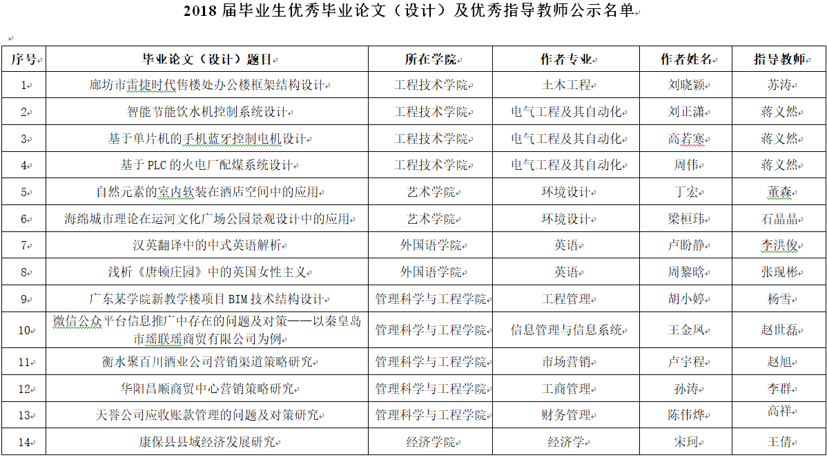 关于2018届优秀毕业论文(设计)及优秀指导教师 评选结果的公示
