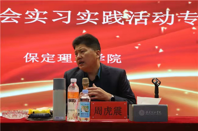 董事长周虎震教授以“大学生如何进行社会实习实践活动”为题,分享了自己的感受和体会,他指出:作为新时代的大学生,在实践实习过程中要以习近平新时代中国特色社会主义思想为思想支柱和力量源泉;牢牢把握时代脉搏,结合新青年的特点,在实践实习中放飞青春梦想,贡献青春力量。